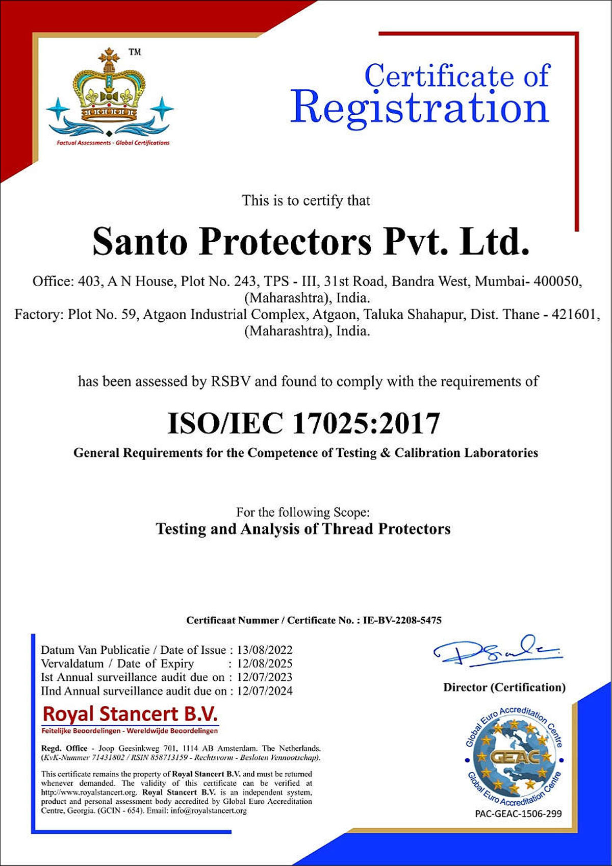 SANTO’s Quality is monitored through their well implemented Quality Management System